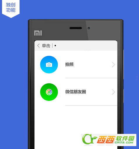一键拍照发并发布微博,轻轻一按,拍照、打开微博、进入分享一气呵成。 只有米键办得到。