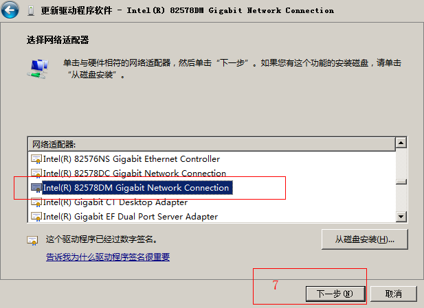 intel官网下载forWindows 2008 R2的exe驱动,把.inf文件从exe文件中提取出来(去C:\Users\ADMINI~1\AppData\Local\Temp\找),然后需要手动安装.inf。只能手动安装,不能自动安装。