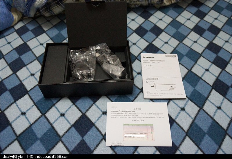 配件除了比较常见的充电器和usb数据线外就是一张印有可以同时激活win8以及office 2013的key的说明书了(也就是说miix2 8除了自带win8.1,还等于附赠了office 2013家庭和学生版)