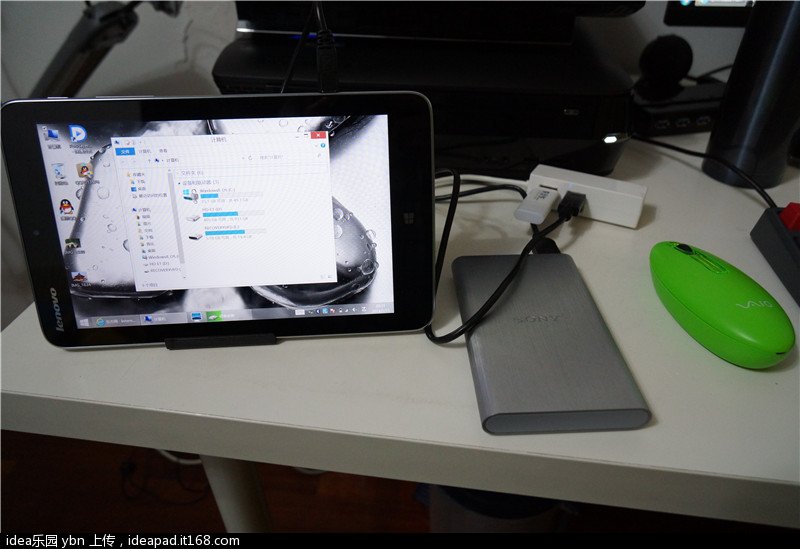 提供的唯一一个带otg功能microusb通过转接加上hub就可以实现拖一个1t移动硬盘+一个U盘甚至更多,加上蓝牙的键鼠的话,其实miix2 8的扩展性还是足够满足大部分人的需求的