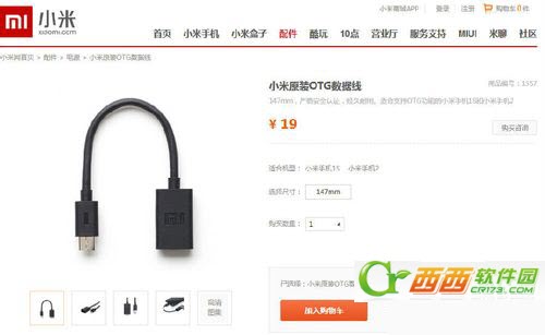 在购买小米手机1S和小米手机2的时候不会附带OTG数据线,我们可以在小米手机官网上购买小米手机OTG数据线;