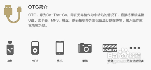 小米手机OTG数据线可以直接将手机连接U盘、读卡器、MP3、键盘、数码相机等外部设备进行数据传输、输入操作或充电等功能;这么多的功能,我们只需要增添一根数据线;