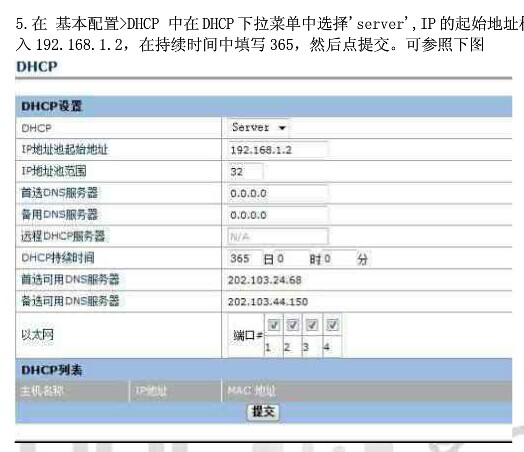 2、网络参数-内网配置:要配置LAN-IP和DHCP服务器配置。这两个配置很重要,因为默认的LAN-IP是192.168.1.1这样会导致内网(192.168.1.x)和外网(192.168.1.x)处在同一网段,导致不能上网,至于原因参考了下网上,是说为了区分内网和外网,并且隔离广播风暴。总之将LAN-IP设置为192.168.2.1(只要网段不同就行),DHCP服务器设置为192.168.2.2-192.168.2.64(同理)。