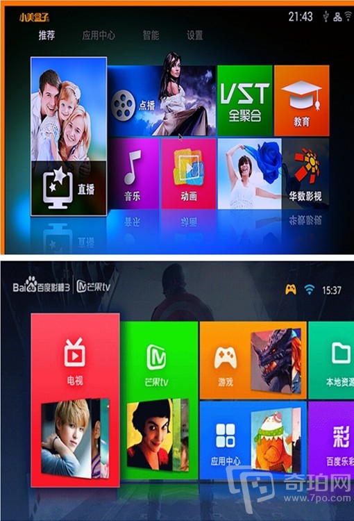 影视资源方面,百度影棒3S正式牵手正版视频运营商芒果tv,首页深度植入了芒果TV的内容,包括七天回看和视频点播内容,集成了芒果TV的正版视频内容,包括,电影,电视剧,综艺,动漫,1080P,杜比专区,3D,财经,体育,生活,微电影等内容,内设VIP专区,有部分收费内容,资源丰富。而小美盒子V9与华数合作,内置正版华数影视,百万高清影视让你欣赏!值得一说的是,VST全聚合这款视频聚合软件也被内置在了其中,这应该就是所谓的强强联手吧!