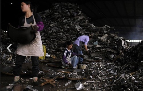 几个女工正在对电子垃圾进行分类(图片来自网易看客)