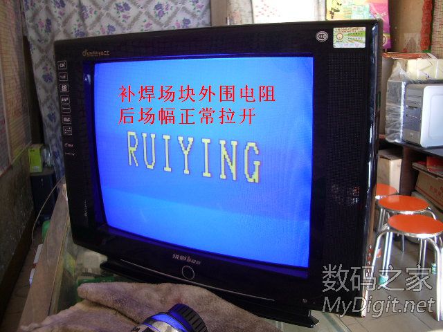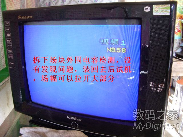 修一个杂牌电视机,故障是场幅压缩,补焊后正常拉开,但是没有彩色,制式和色彩设置也没有问题,AV和TV 都试过,一样的故障表现。