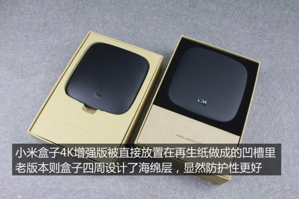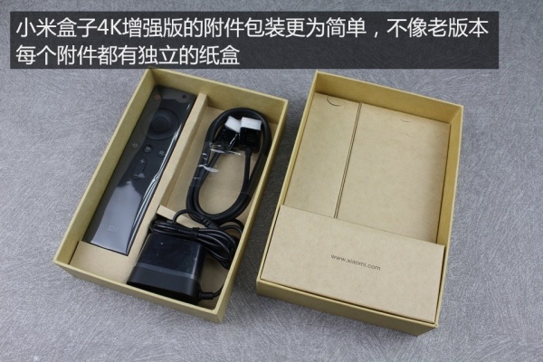 小米盒子4K增强版的外包装和老版本没有明显差异,都采用环保再生纸包装,仅仅通过包装盒无法区分两者。