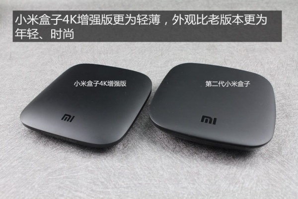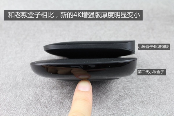 这次小米发布的支持4K的增强版盒子也是其第三代盒子产品。和老款产品相比,新盒子的外观变得更小、更薄。