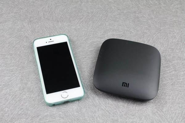 小米盒子4K增强版的体积依然非常不错,图为iPhone5S和它的对比。