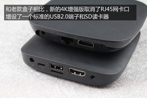 不过小米并没有说明新版4K盒子的HDMI端子版本,如果是老版本1.4的话其刷新率输出依然会被限制在30Hz。而新增的USB2.0端子也让人感到有些意外,毕竟在播放USB设备上的4K视频时,USB3.0能提供更为宽裕的带宽。