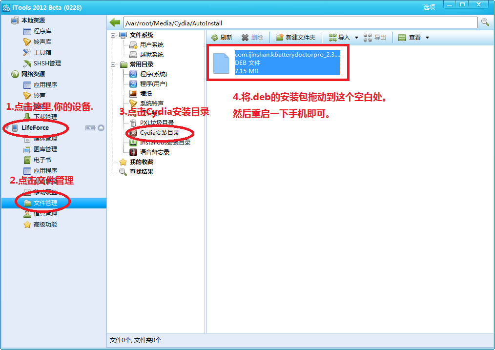 方法一(推荐)手机安装:请在Cydia搜索“金山电池医生”或者“batterydoctorpro”,选择bigboss源版本下载安装。