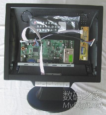 啥也别说了,网购吧----把显示屏的型号报给卖家(一般不同型号的显示屏需要对驱动板刷驱动的)-----商量好价格(免去了部分邮费,由卖家承担)----支付宝付款(一共是255元)。 卖家还真是讲诚信啊。4天之后,我就收到了寄来的东西(机盒、驱动板、电源适配器、遥控器)。插接接好连接线,固定好显示屏,组装好。 呵呵~~~~,破东西变成了好东西!该显示器有台式机显卡的VGA接口、AV接口、TV馈线接口、S端子接口,音响功放驱动板自带,机箱里面对称有两个0.25w的喇叭,板上自带双声道音频输入输出插孔,接上一个2.1音响,效果很好