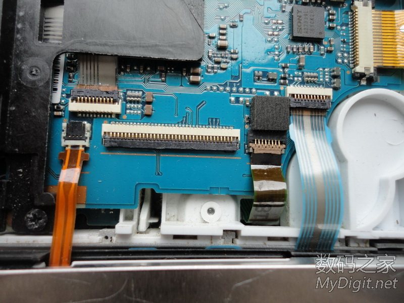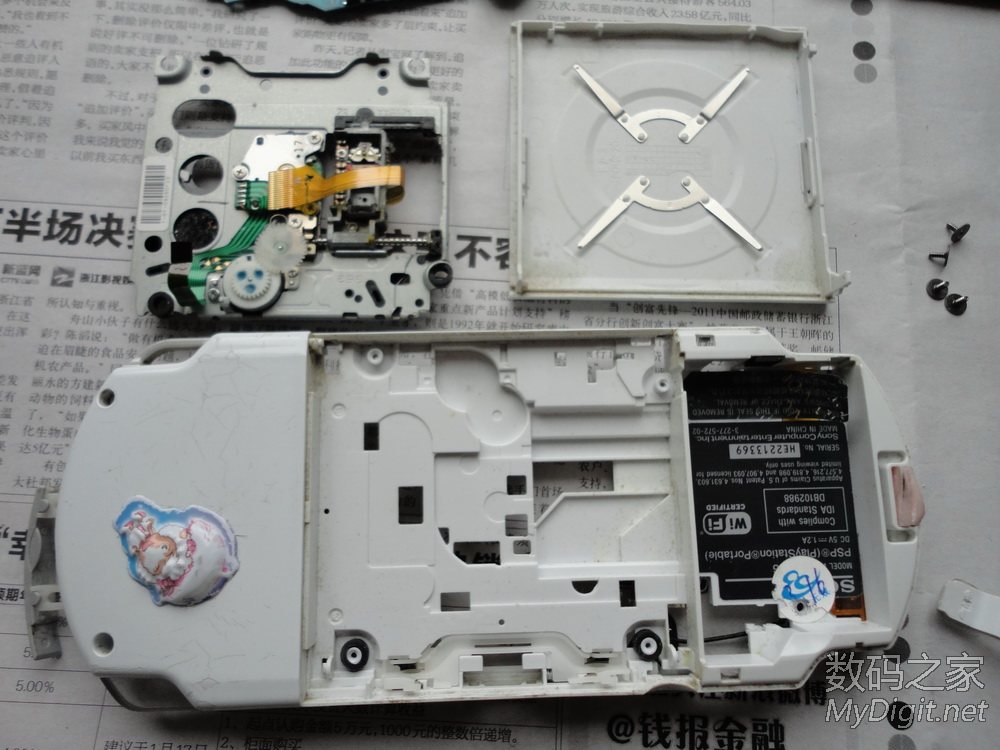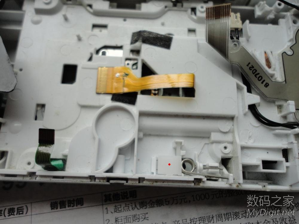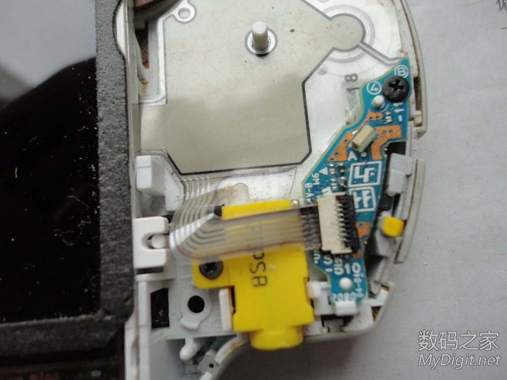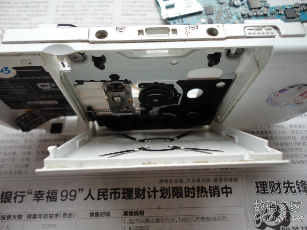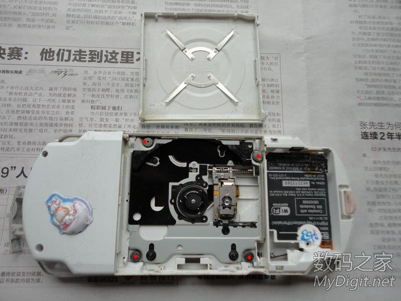 红点处有个塑料卡用镊子拿下弹簧向左直接拔出UMD的盖子就可以拿掉了