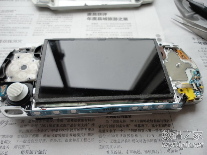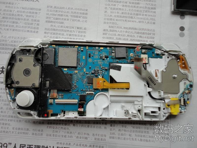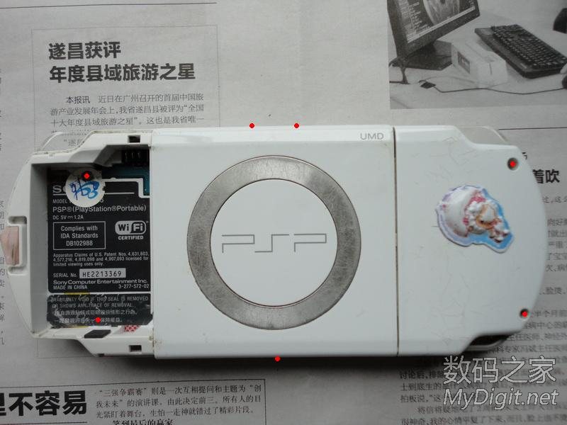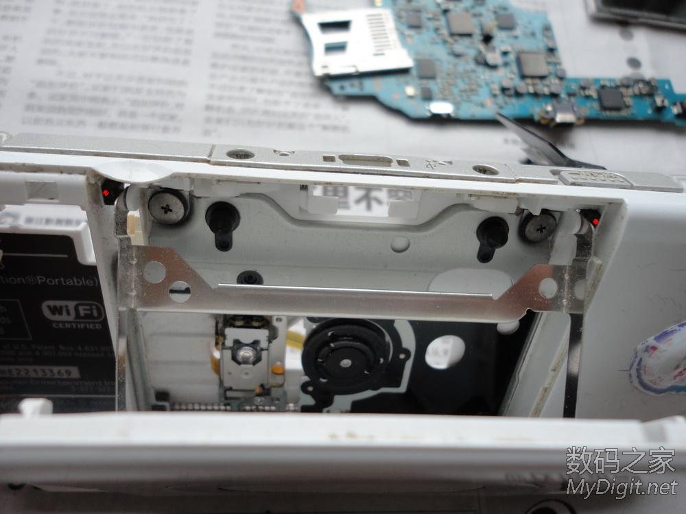 17红点处有个塑料卡用镊子拿下弹簧向左直接拔出UMD的盖子就可以拿掉了
