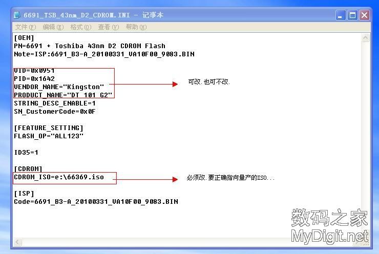 記得 INI 要改掉以下幾項: (之前由ChipGenius得到的資料)