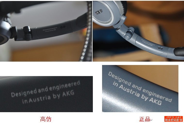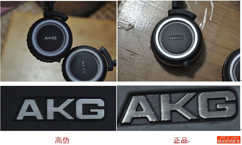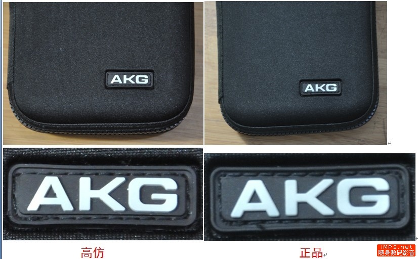 这里不太好区分,但是还请大家看看放大后的AKG字样,有发现出什么地方区别吗?对的,就是正品AKG字样相对很圆滑,几乎没有棱角,没有边角,字的周围都是有弧度的,很圆润的感觉,但是来看看假货,棱角分明,边线也很明显,看来细节做工上还是不太考究啊~~