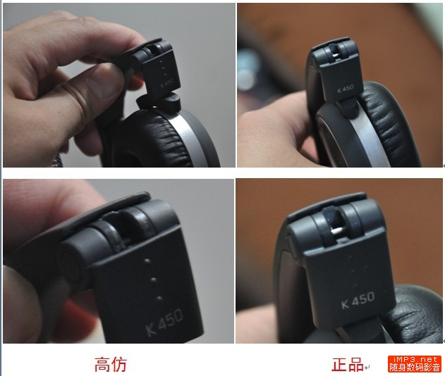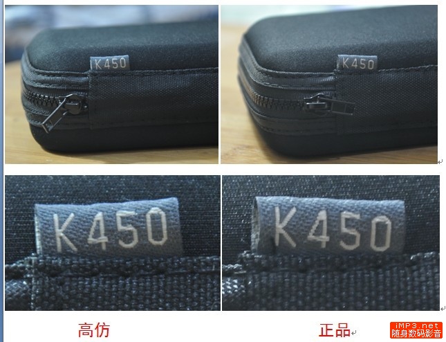 我通过正规渠道购买了雅登行货K450,然后对两者进行了拍照并放大处理,仔细对比后发现,虽然乍看之下几乎和正品完全一样,配件齐全,之前网上所说假货没有3.5mm转2.5mm接口,但从我购得的假货来看,显然现在的假货商已经把这一最明显的区别给改进了,其实假货在做工上永远都是无法达到正品的水品,至于音质嘛!!有人说对得起假货这不到正品一般RMB的价格,反正我是没听过,果断退货了~~~~至于正品的音质效果嘛我也不多说了,在这里比我老鸟的人多的是,哈哈!!也有人发过体验贴了~~~~写此贴为了方便新手在淘宝购买此耳机时要多留心啊!!水真的很深~~~~下面我就一一的把一些细节点出来!刚入门的新手都真大眼睛看仔细哈~~~~别被JS给忽悠了,什么“国际版”,什么“水货”都是扯淡,至于你信不信,反正我是不信~~~~首先在这里还是要感谢论坛的各位帮助偶鉴别假K450~~谢谢大家!!总共算了下比较明显的有十一处,还有一处细节因为没在假货上留意就大家以后买到时候留意下吧!!哈哈哈~~~~希望大家买到逞心如意的商品~~~
