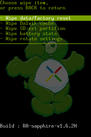 如遇到刷机失败的情况,比如刷机后出现无法开机,无法进入系统的情况,请再次关机,然后重新通过之前的方法再进到recovery恢复模式中,选择Wipe,进入如下界面后,全部项目选择一下,清空所有手机数据(如同恢复出厂设置),然后再重启手机就可进入系统了。如果还是有问题,请先wipe后再重新按之前的步骤再刷一次。
