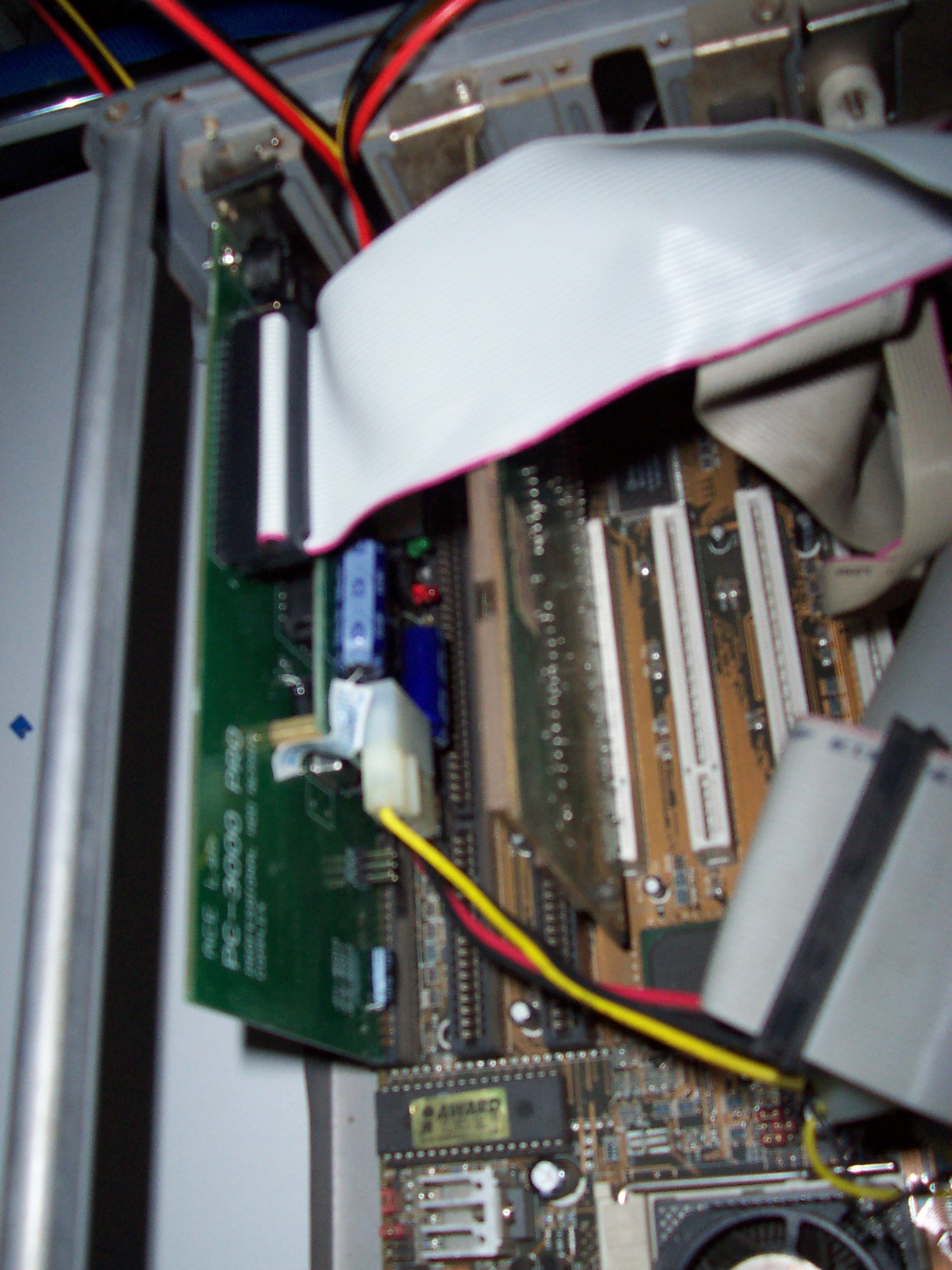 PC3000带的电源线是接在PC3000卡上的OUT那个电源接口的,PC3000卡上的IN是接主机电源的,这个不要弄错了,如果错了PC3000卡是不能工作的,还有可能损坏电源板.这个一定要注意了!