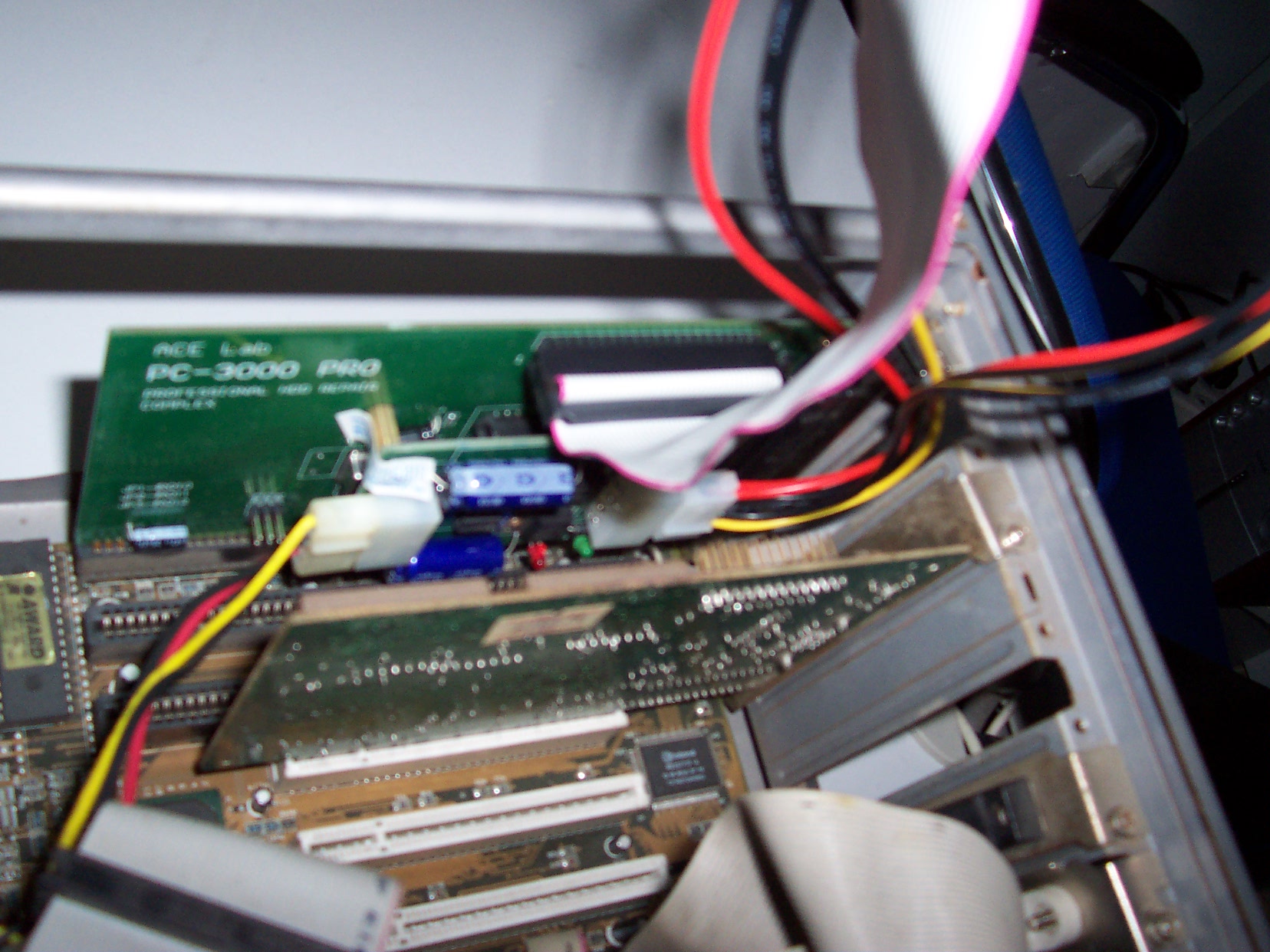 PC3000卡上一般有两个IDE接口,都是可以使用的.如果使用卡里面的就不要HDD SEL跳线,如果要将IDE线接入卡后面就要跳上HDD SEL那个跳线