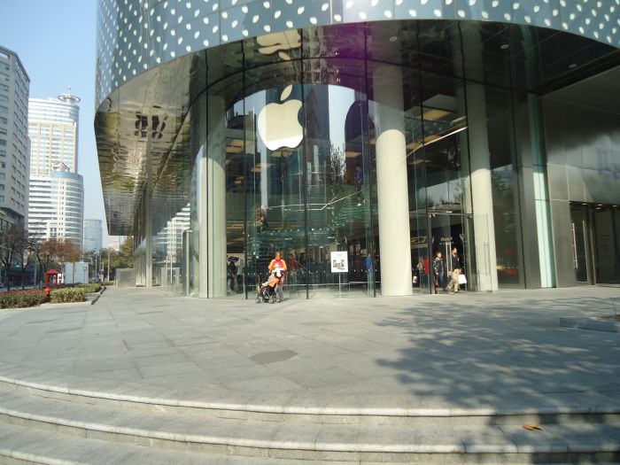 一号线到黄陂南路下,二号出口出来就到香港广场店了看到树叶隐约遮住的苹果的LOGO了吗?