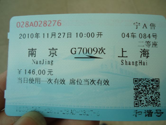 在自动售票机上买了去上海的票