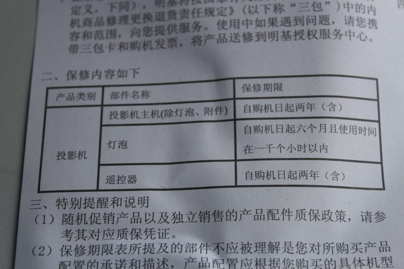 | 投影灯泡寿命 | 2000/3000 (普通/经济模式) |