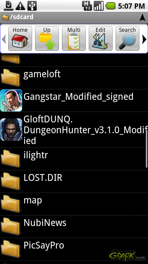 利用软件打开SD卡根目录,就可以找到已经拷贝好的,从论坛下载的软件包了,软件包都有自己的图标很好辨别。