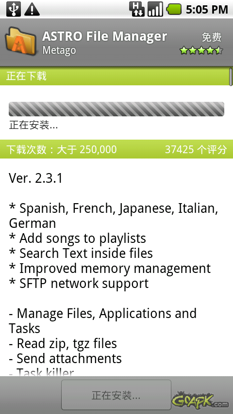 第四种是MARKET,也就是ANDROID自带的软件下载市场,只要顺利连接网络并且登录GMAIL帐号就可以下载几万个免费软件了。