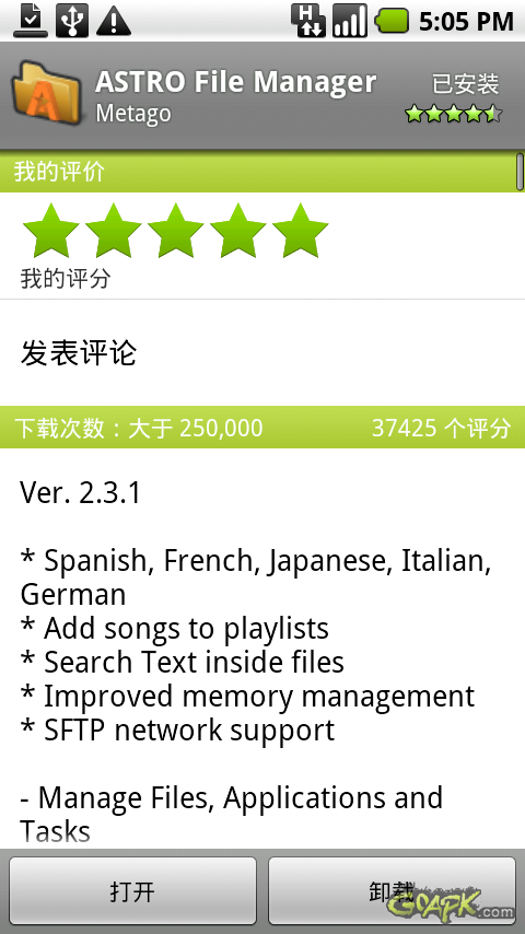 还可以对软件进行评分,之后点击打开,也可以到软件菜单中找到ASTRO。