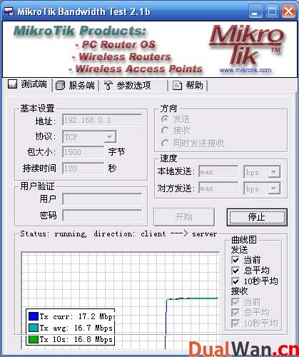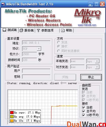 RX速率(从wan口到lan口,即客户机下载) 前者16.9Mbps < 后者17.1Mbps