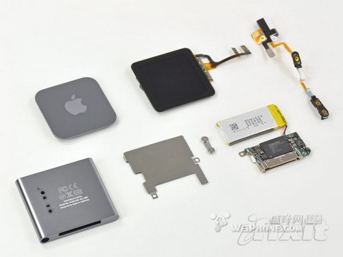 iFixit还指出,六代nano的LCD多点触控屏幕分辨率为240*240,像素密度为每英寸220个(ppi),远胜搭载9.7寸屏幕、ppi为132的iPad,但仍不及iPhone 4视网膜显示屏326 ppi的密度。