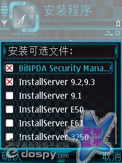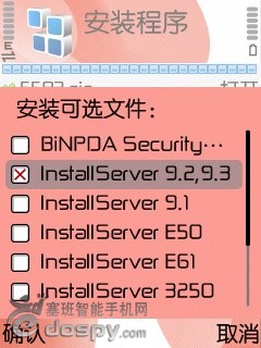 2.安装系统全自动破解.sisx。安装的过程中会出现安装可选文件,只选择下图中选的三项,其他的全部不选,注意别选错,选好后按确认便可以安装,安装到存储卡中!