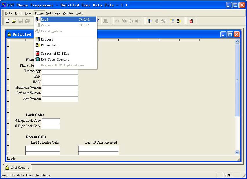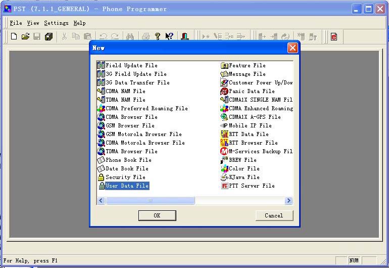 一、运行PST Phone Programmer,点击File,选择第1项New,如下图:
