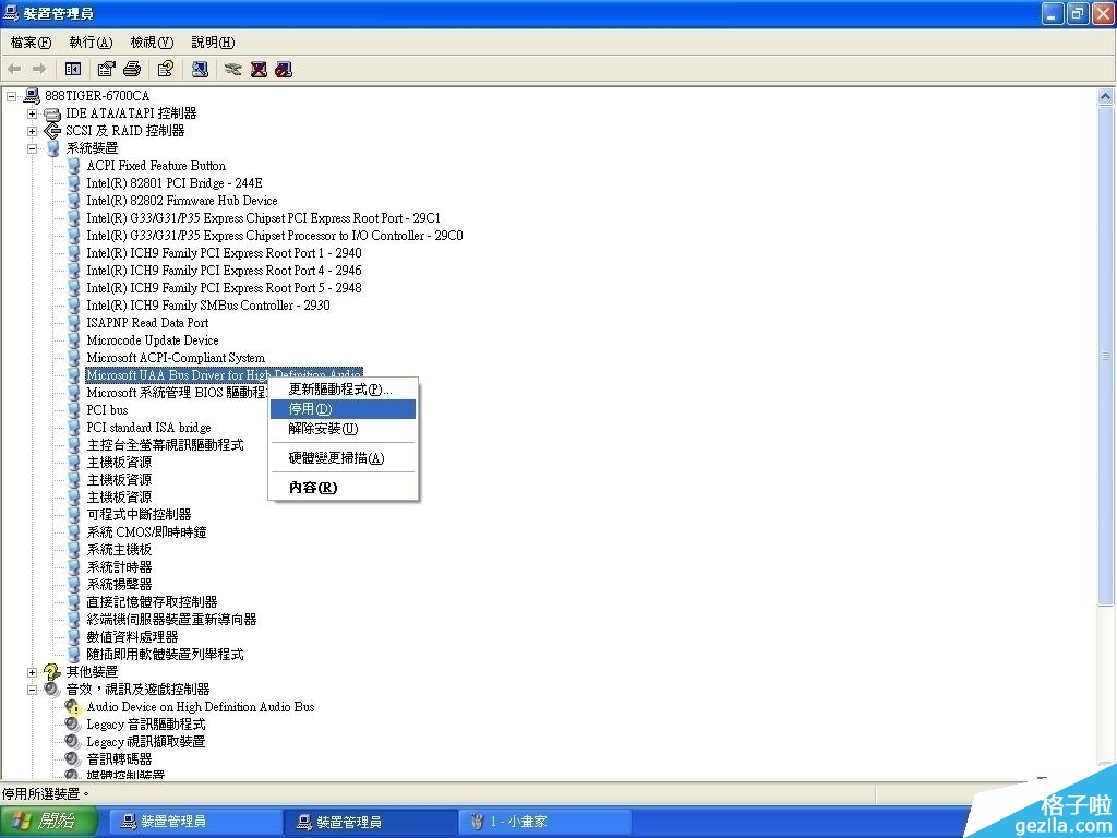 2.确认装置管理员内的系统装置底下有无 “Microsoft UAA Bus Driver for High Definition Audio”?