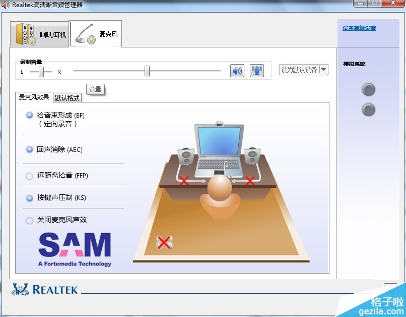 (备注:有些机型的Realtek 高清音频管理器中 会多出一个按键声压制(KS)的选项,如下图所示: