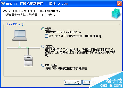 4. 如果显示对话框,要求选择要安装的项,请选择“UFR II打印机驱动程序”,然后单击“下一步”按钮。