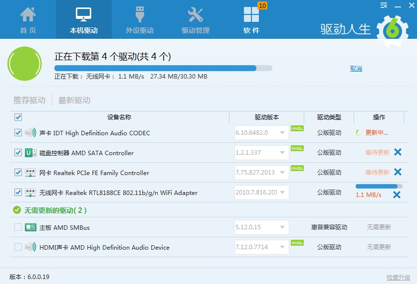 提示电脑驱动需要更新,4款驱动更新只花了约3分钟的时间,相对以往更新驱动的速度有很大的提升,这一点还是很不错的。