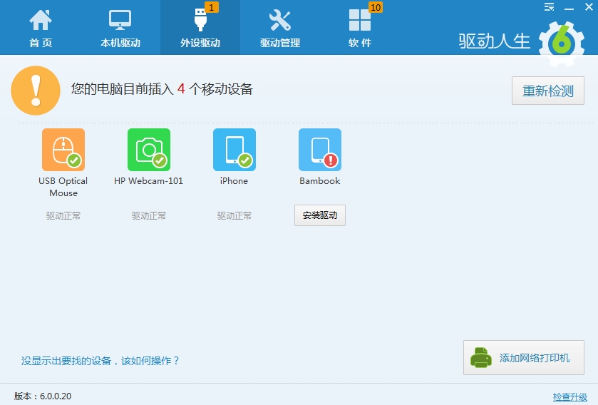 驱动人生6测试版本官方还没有发布,各大下载站也没有更新版本,就悄然被泄漏出来了,笔者第一时间安装并体验了一下,总体还是不错的。