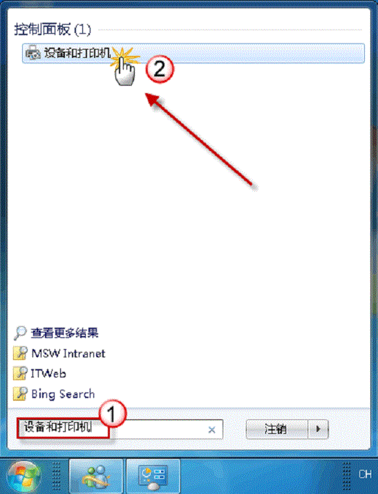 1. 按一下开始按钮,在开始搜索框中键入“设备和打印机”,然后单击打开。
