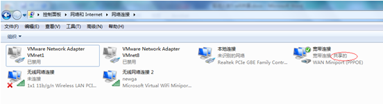 宽带连接图标出现一个”共享的”;