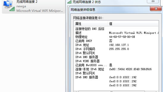 I 首先打开WIFI虚拟网卡,查看其IP地址配置信息;