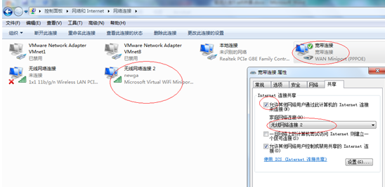 附:笔者这里是通过无线路由器共享上网的,采用3G可能还会另外虚拟出一块网卡,配置有点区别就是需要配置的网卡不同,选择3G虚拟网卡来进行配置即可,由于笔者没有3G环境,所以没有模拟此测试,采用CMCC模式上网跟无线路由器没有任何区别;