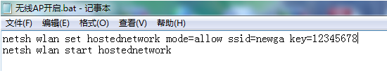 笔者一直是自己通过一个BAT脚本来开启WIFI共享的,这里也共享一下笔者的WIFI共享脚本;但是此脚本的稳定性没有驱动人生靠谱,经常出现获取不到IP地址,这里推荐大家使用驱动人生WIFI功能;