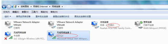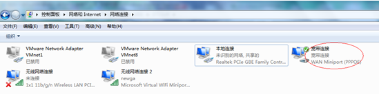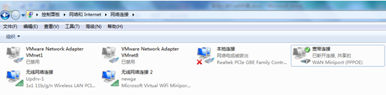 网卡名称事先定义以免各位分不清每一块网卡作用:(笔记本有线网卡定义为”本地连接”,无线网卡定义为”无线网络连接”,PPPOE宽带拨号虚拟网卡定义为”宽带连接”,WIFI虚拟网卡定义为”无线网络连接2”)