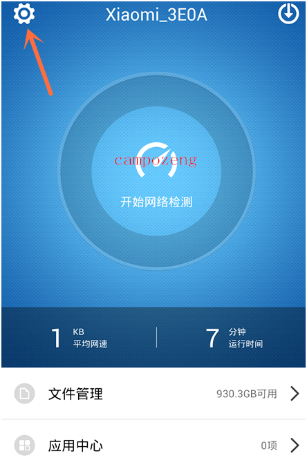 小米路由器就可以初步使用了,进到小米路由器客户端主界面后,如果要修改设置,可以点左上角的设置图标,如下图