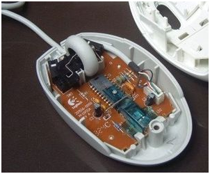 1、用螺丝刀将鼠标外壳上的螺丝拆下,插下外壳,露出内部的电路板,注意不要把鼠标的连接线弄断了,除非你有电焊工具,否则还是小心为好。