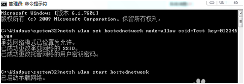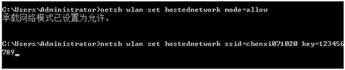 netshwlansethostednetworkssid=无线网络名称 key=密码