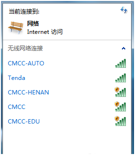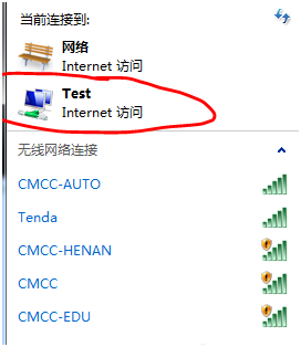 创建好的无线网络和路由器的并没有区别,使用其他带有无线上网模块的设备可以在无线网络列表中看到,使用软件创建的方法太过简单,这里不做赘述;无线列表如下图所示: