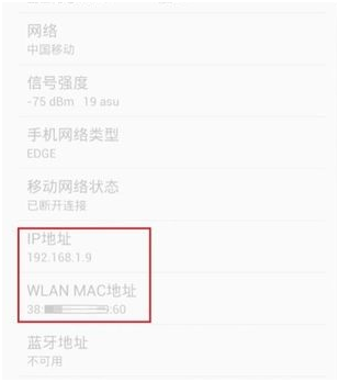 看到没,里面就能看到自己手机获取到的IP地址和手机本身的MAC地址,蓝牙的要打开蓝牙才能显示